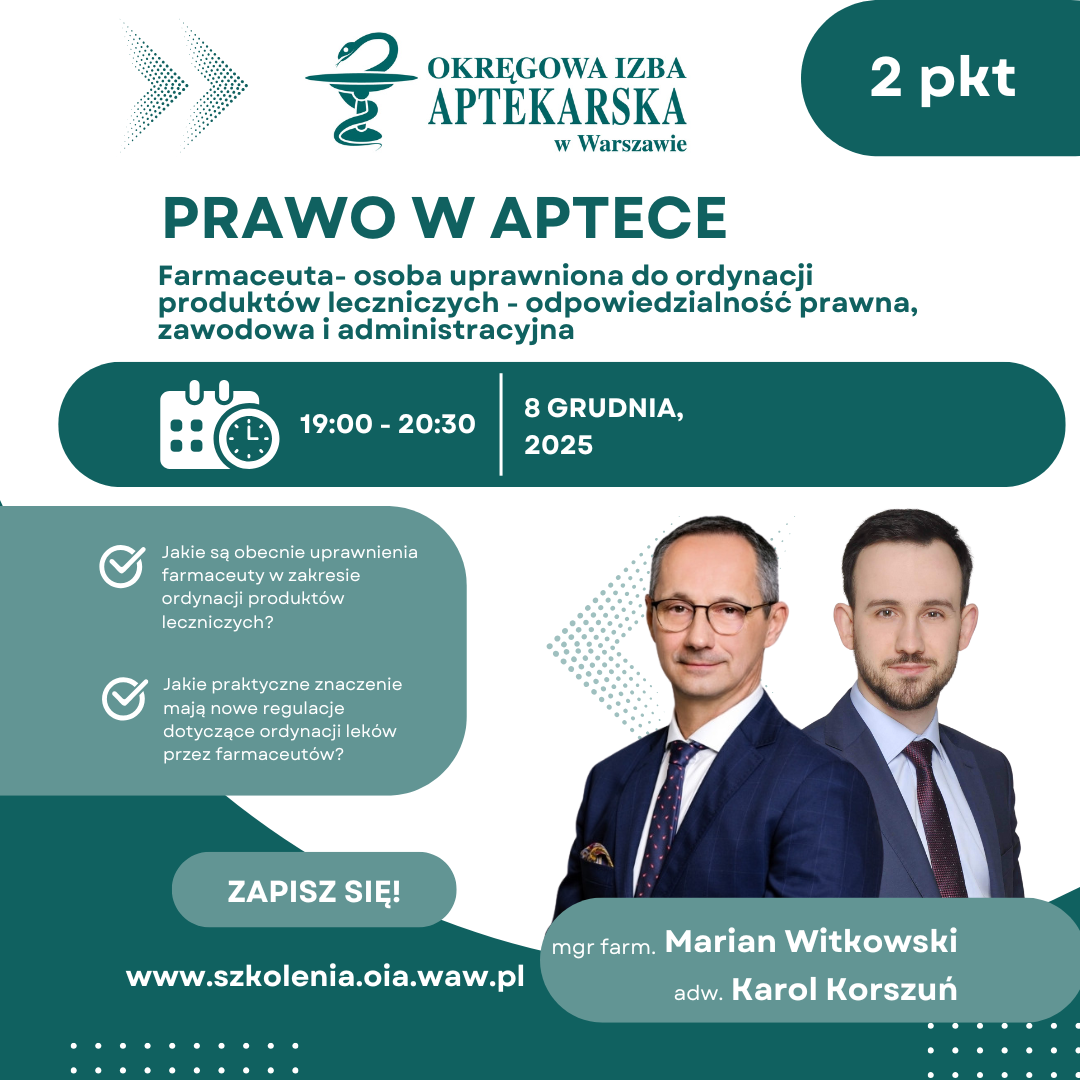 🎓 Prowadzący: mgr farm. Marian Witkowski / adw. Karol Korszuń